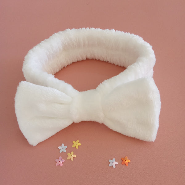 - White Plush Bow Spa Headband